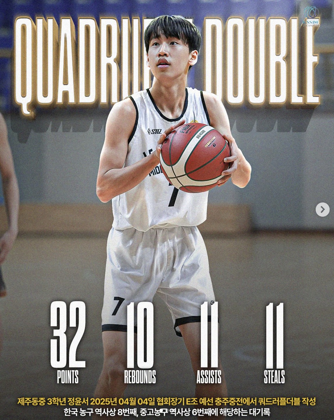 [50협회장기] 대기록 쾅! 한국농구 8번째 쿼드러플더블 주인공 탄생, 제주동중 정윤서