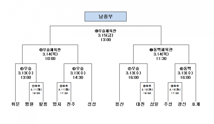 남중부 결선 일정은 11일부터 12강 토너먼트로 시작한다.