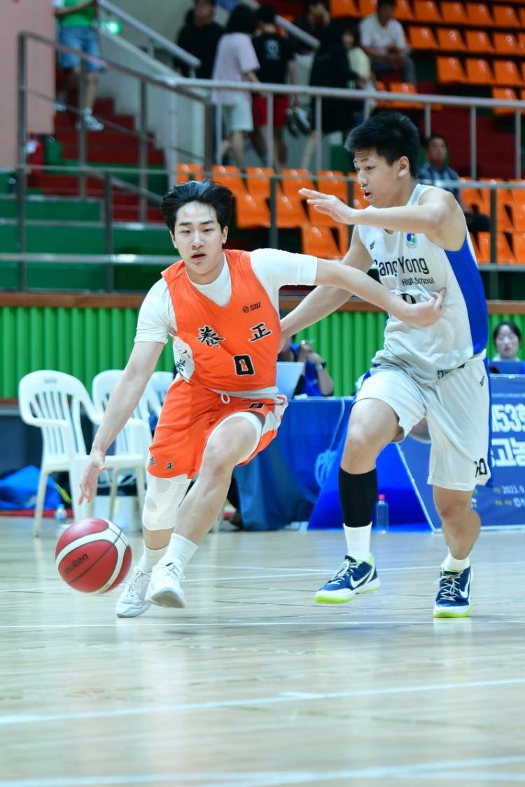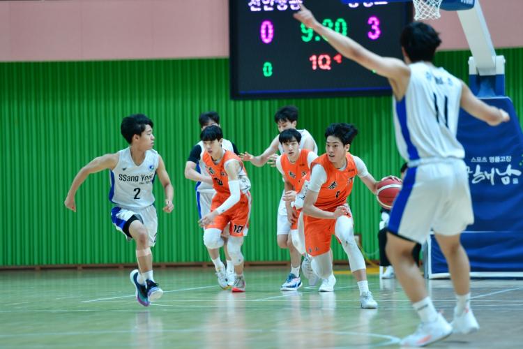 한국중고농구연맹(회장 박소흠)은 9월 12일부터 21일까지 10일간 전라남도 해남군에서 '제53회 추계 전국남녀 중고농구연맹전 해남대회'를 개최한다. 사진은 12일 열린 남고부 예선 천안쌍용고와 양정고 경기다.