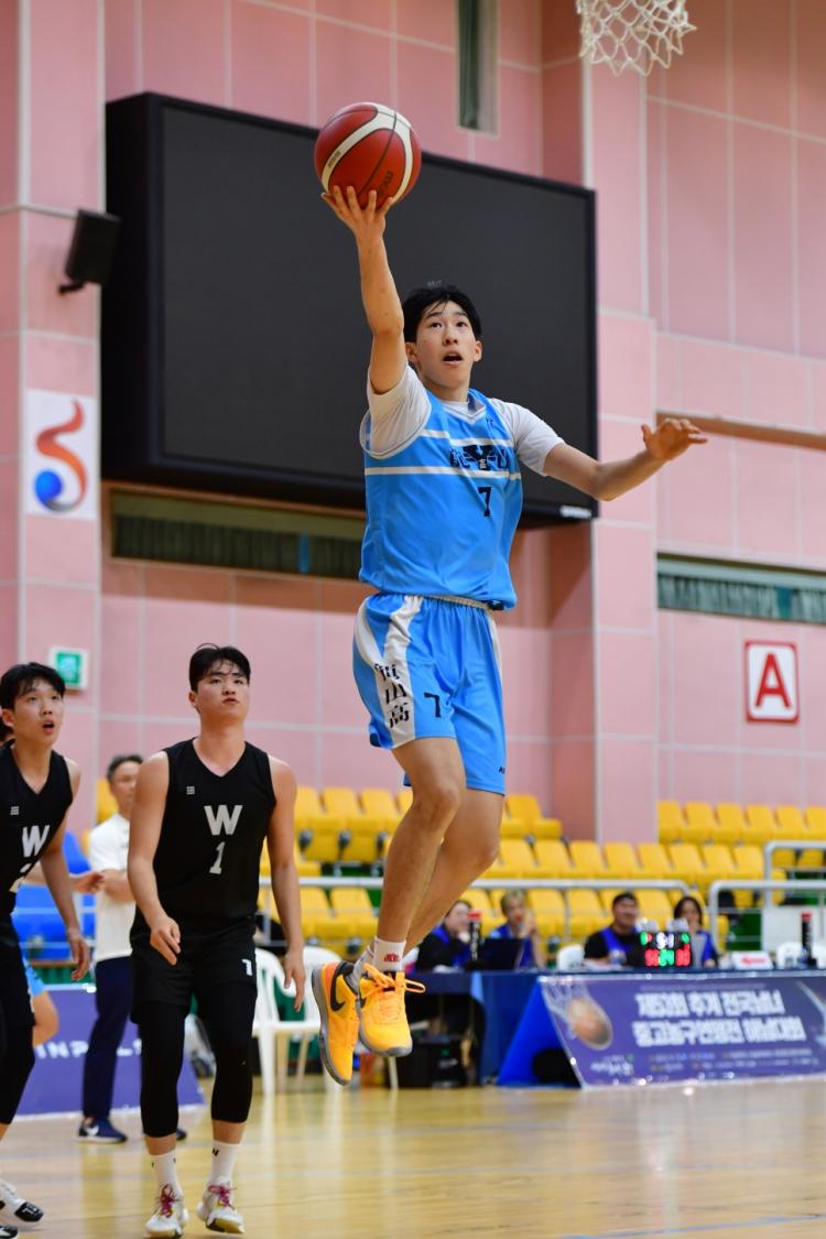 한국중고농구연맹(회장 박소흠)은 9월 12일부터 21일까지 10일간 전라남도 해남군에서 '제53회 추계 전국남녀 중고농구연맹전 해남대회'를 개최한다. 사진은 12일 열린 남고부 예선 휘문고와 용산고 경기다.
